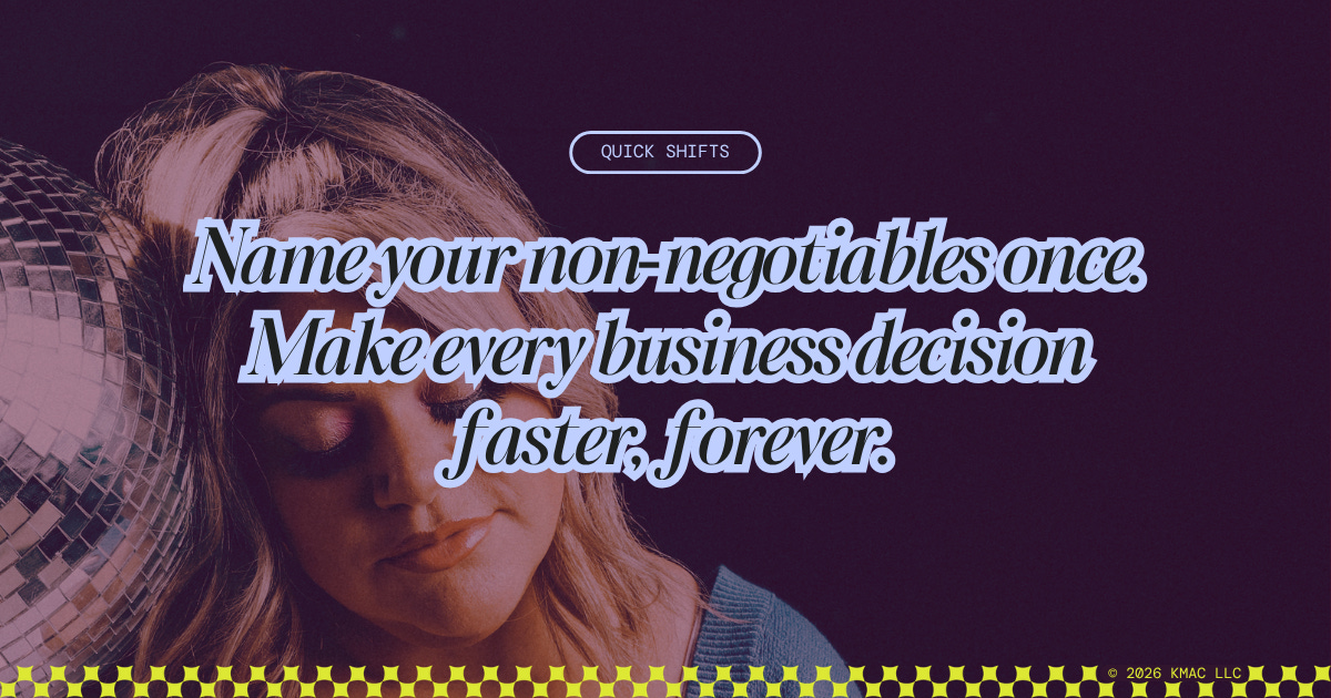 They’re what you return to when someone makes a request that feels slightly off and you can’t articulate why. They’re what keeps your brand coherent across offers, content, and client experiences. They’re the gut-check you’ve been doing instinctively but have never written down.