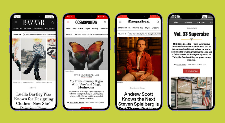 Maybe that’s because each site was built with it’s own distinct functionality and took anywhere from 1 to 3 (yes THREE) years to complete. I remember sleeping on the carpet of the 19th floor of Hearst Tower crossing the finish line of an almost 2 year redesign of Harper’s Bazaar. Meanwhile, we were acquiring titles and moving from managing 10 national titles to 50 titles globally. YIKES.