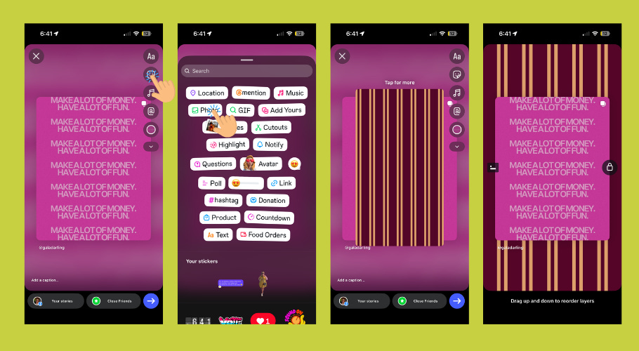 These are the fun ones. Custom graphics with transparent backgrounds that you can layer into your content using Instagram’s text and sticker features. Think of them as your personal stamp. A little logo badge, a signature element, something that says “this came from me” without you having to say a word.