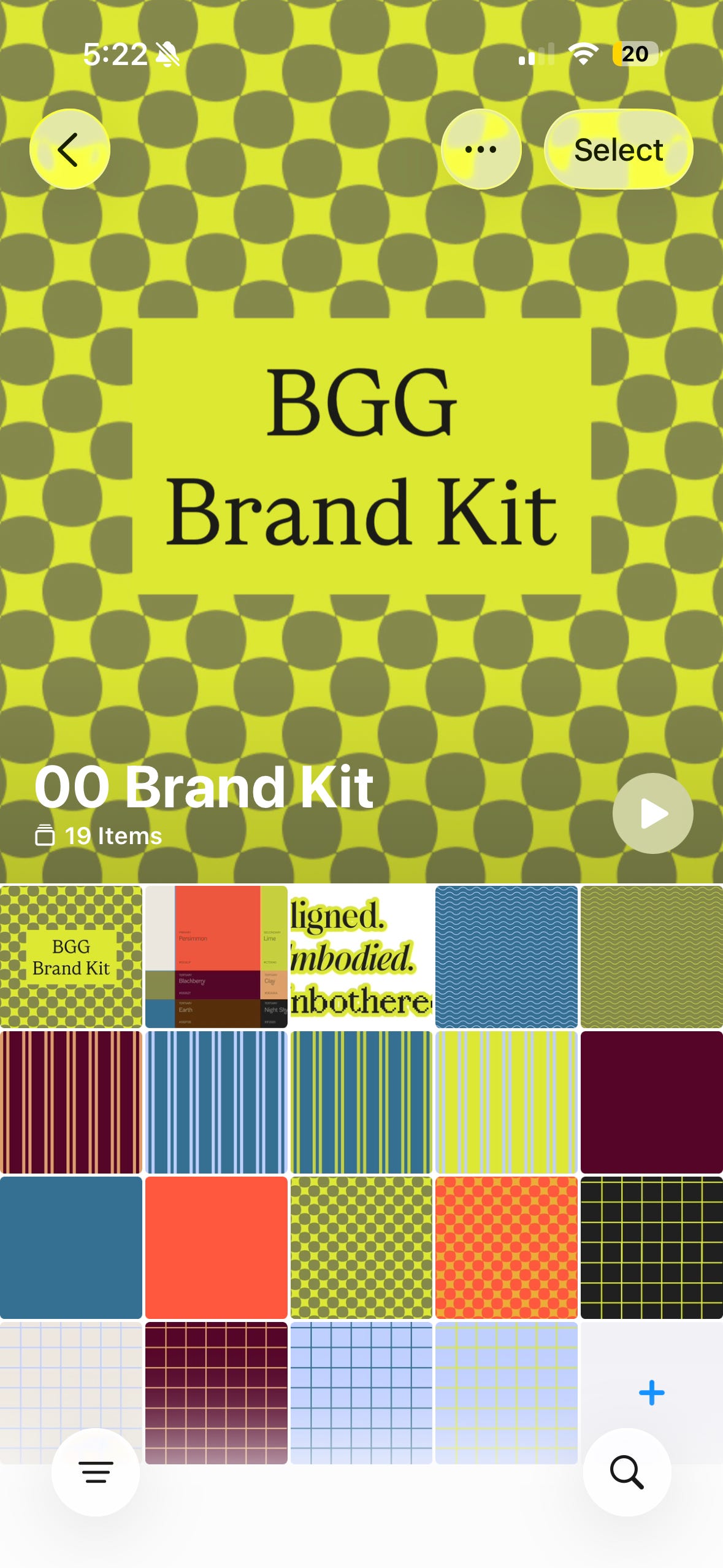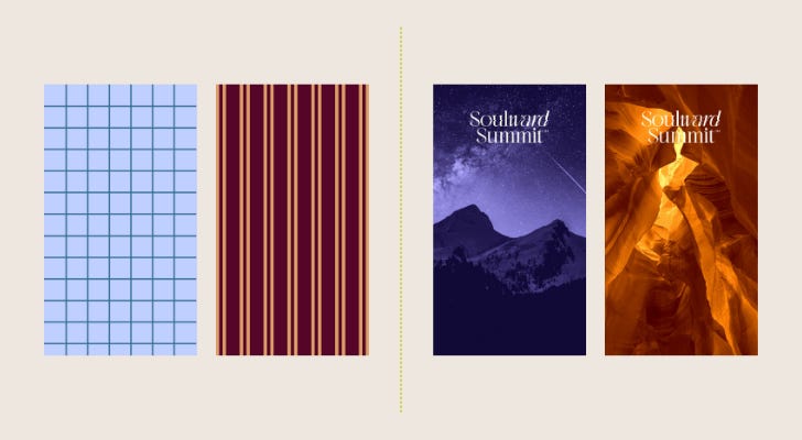 These are images that feel like your brand. They could be patterns you created in Canva, textures you love, or photos that live in your colour palette. I keep two different sets because my brands have different vibes. Be Good Guide is pattern-heavy. Soulward Summit is photo-based. Neither is wrong. The point is that when you drop one of these into the background of a story or a reel, it instantly feels like you.
