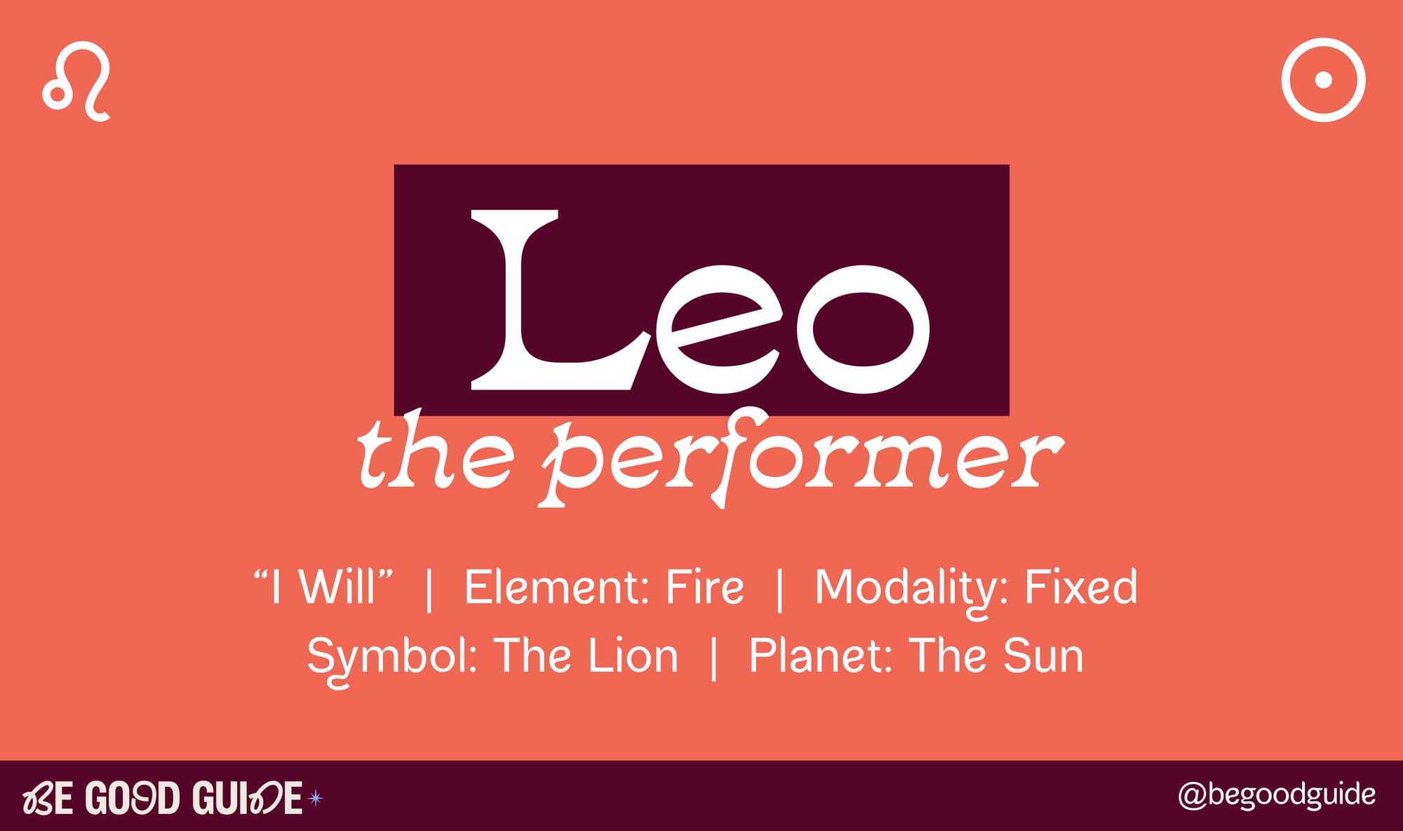 Leo is the sign of the lion, ruled by the Sun. This is a sign that thrives on expression, creativity, and embracing its true self. Itâs all about letting your inner light shine, celebrating who you are, and being recognized for your unique gifts. Leo also rules the 5th house, which is associated with self-expression, fun, romance, creativity, and even children. Think of it as the energy of the heartâbold, confident, and a little dramatic. But when itâs in balance, Leo energy is deeply authentic and filled with joy.